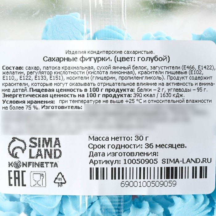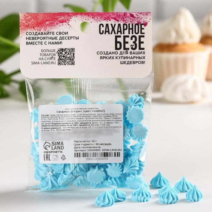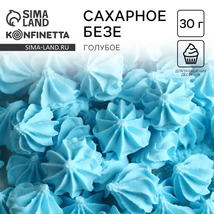 Безе сахарные голубые KONFINETTA для декора капкейков, торта, куличей и напитков, 30 г.