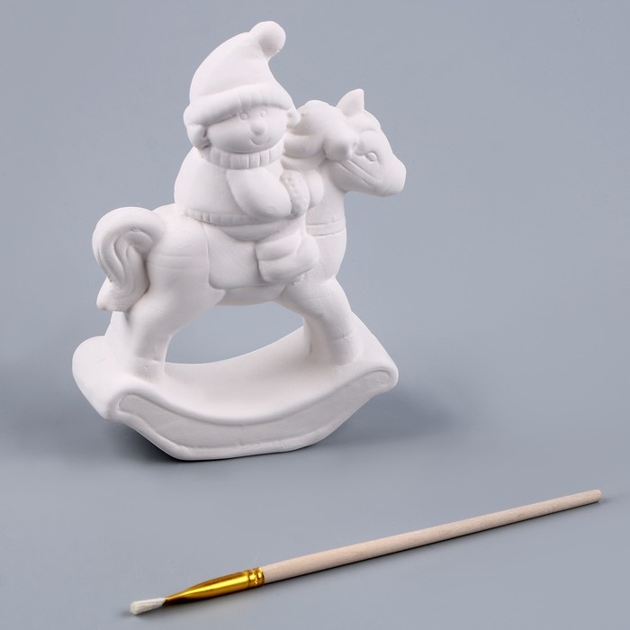 Новый год! Фигурка под роспись «Снеговичок верхом», с кистью