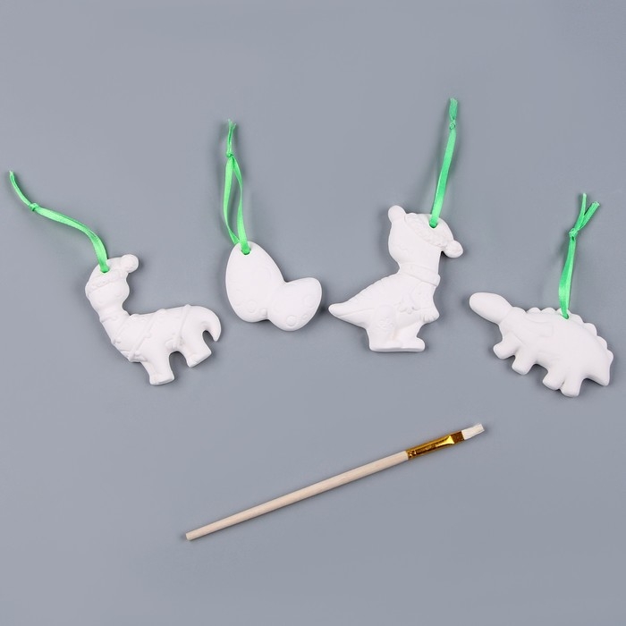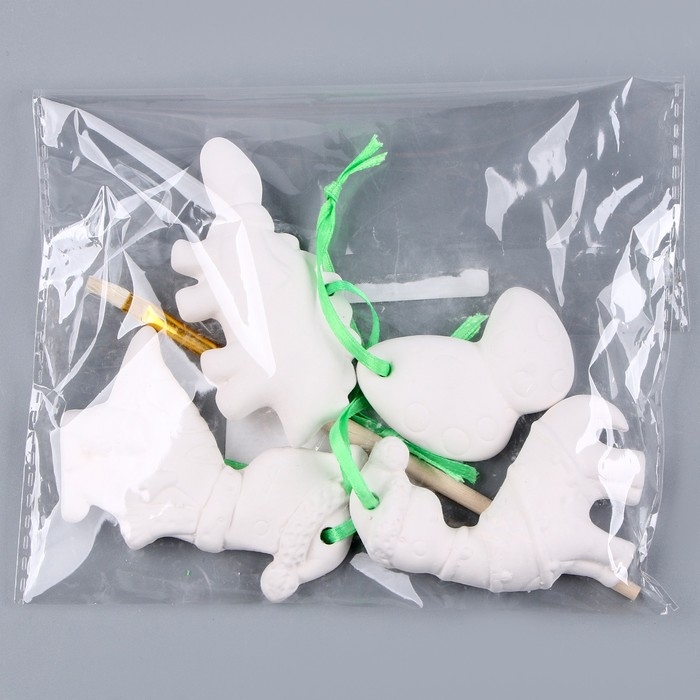 Новый год! Набор елочных украшений под раскраску 4 шт «Динозавры» с подвесом, кисть