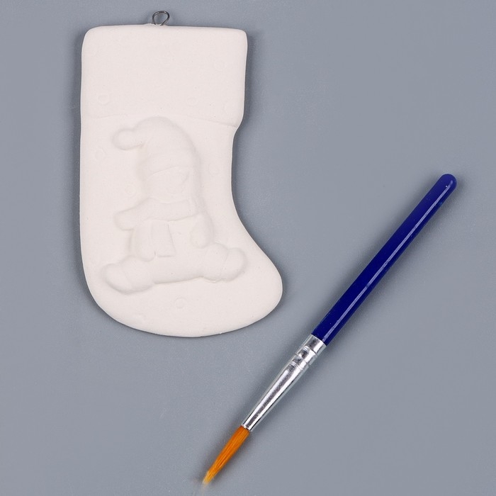 Новый год! Ёлочное украшение под раскраску «Носочек» с подвесом, кисть