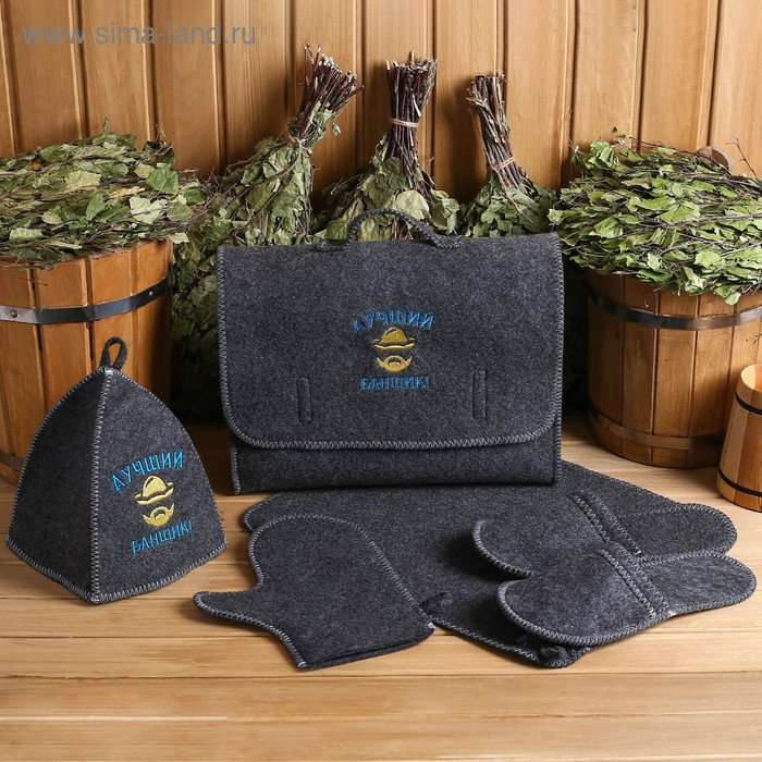 Набор банный портфель 5 предметов "Лучший банщик", серый