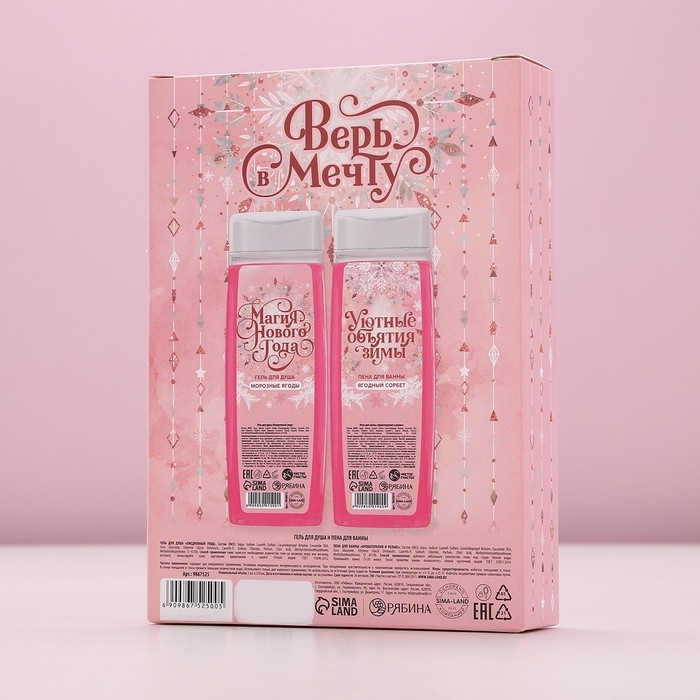 Подарочный набор косметики новогодний «Верь в мечту», гель для душа и пена для ванны, 2 х 250 мл, Новый Год