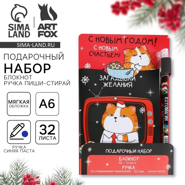 Подарочный набор новогодний, блокнот и ручка пиши-стирай «С новым годом!»