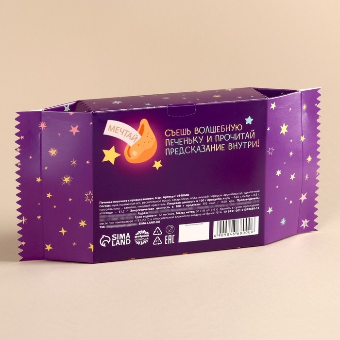 Печенье с предсказаниями «Печеньки исполнения желаний», 36 г (6 шт. х 6 г).