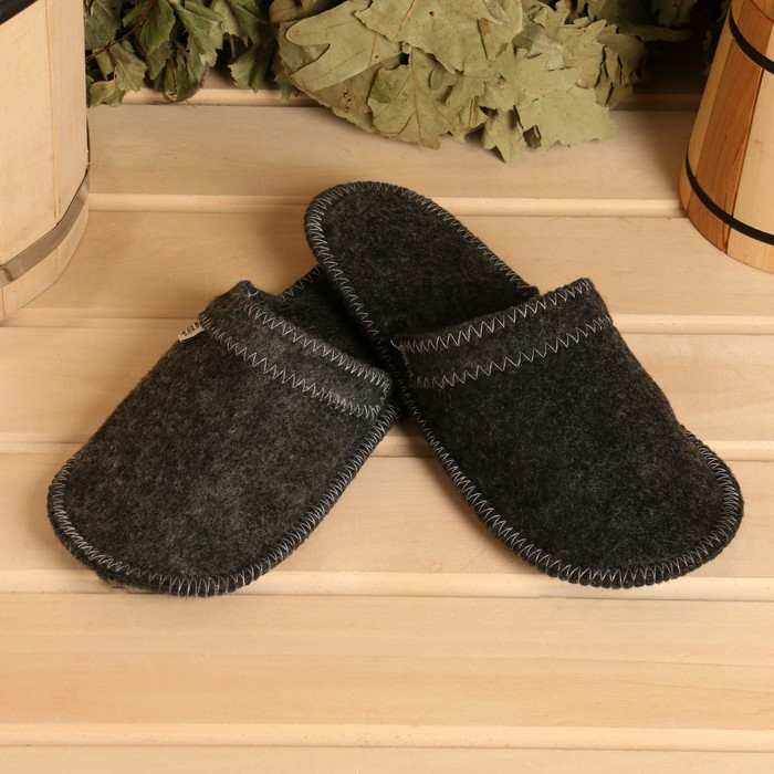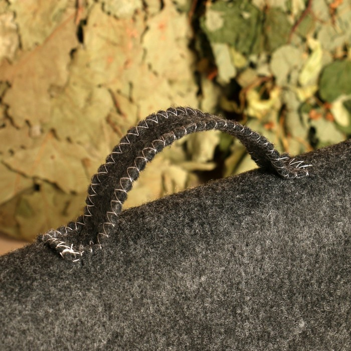 Тапочки из войлока и коврик впитывают влагу и сохраняют сухость, что обеспечивает комфорт во время посещения парной.