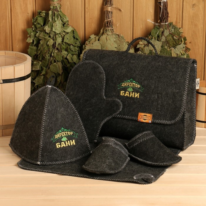 Набор банный портфель 5 предметов "Директор бани", серый