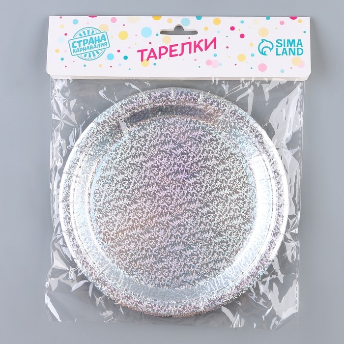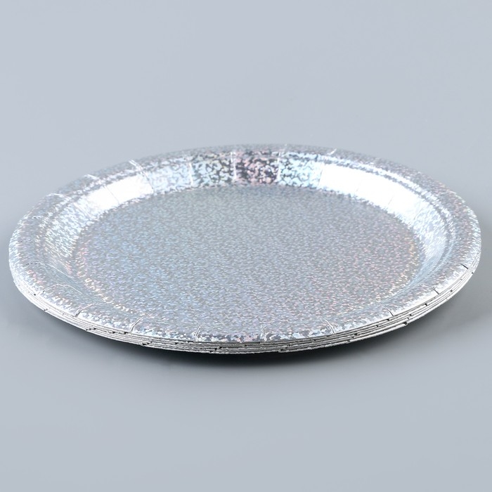 Тарелка бумажная «Голография», в наборе 6 шт., цвет серебро
