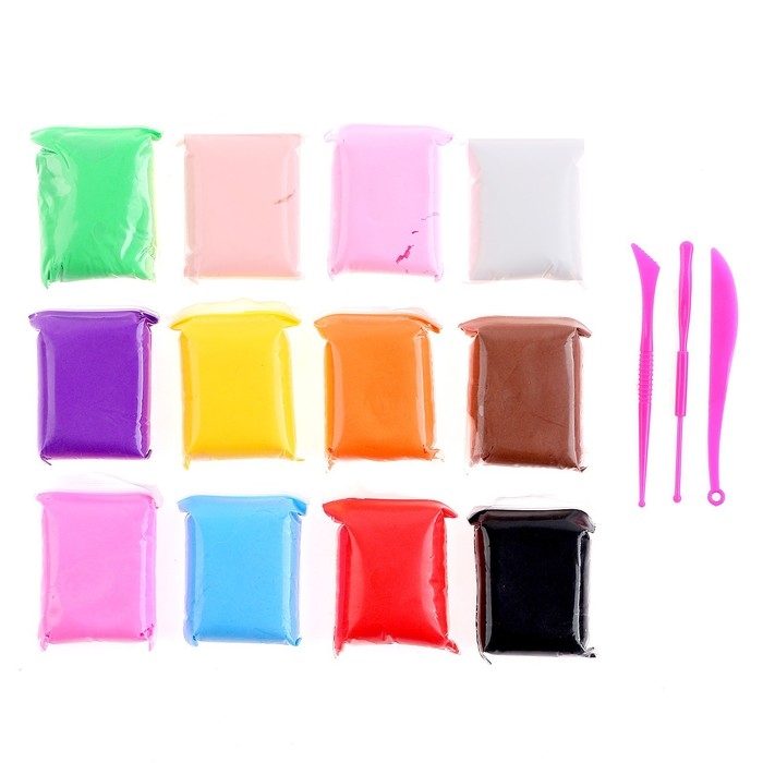 Пластилин лёгкий, прыгающий, набор 12 цветов, вес 1 цвета: 10 г, 3 инструмента