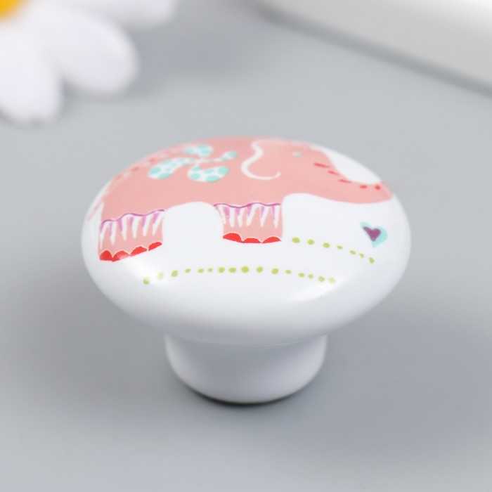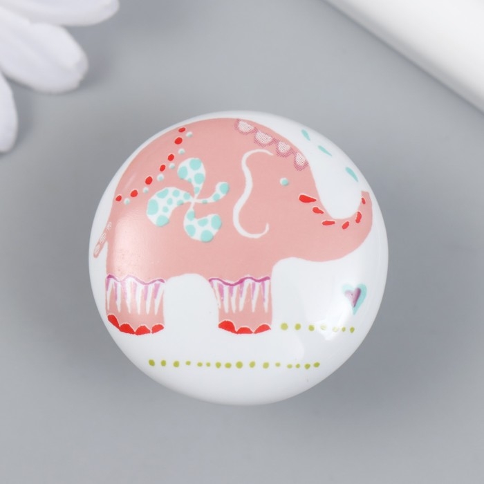 Ручка для шкатулки керамика, металл "Розовый слон" 3,8х3,8х2,8 см