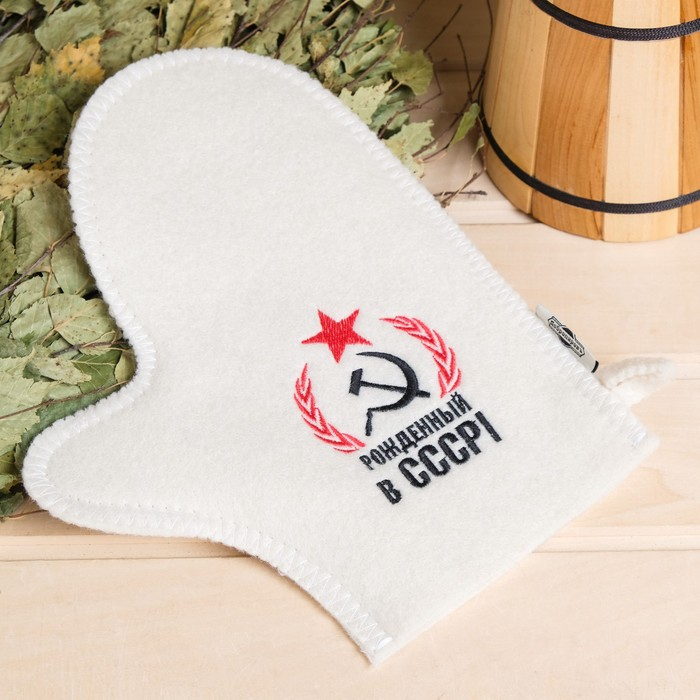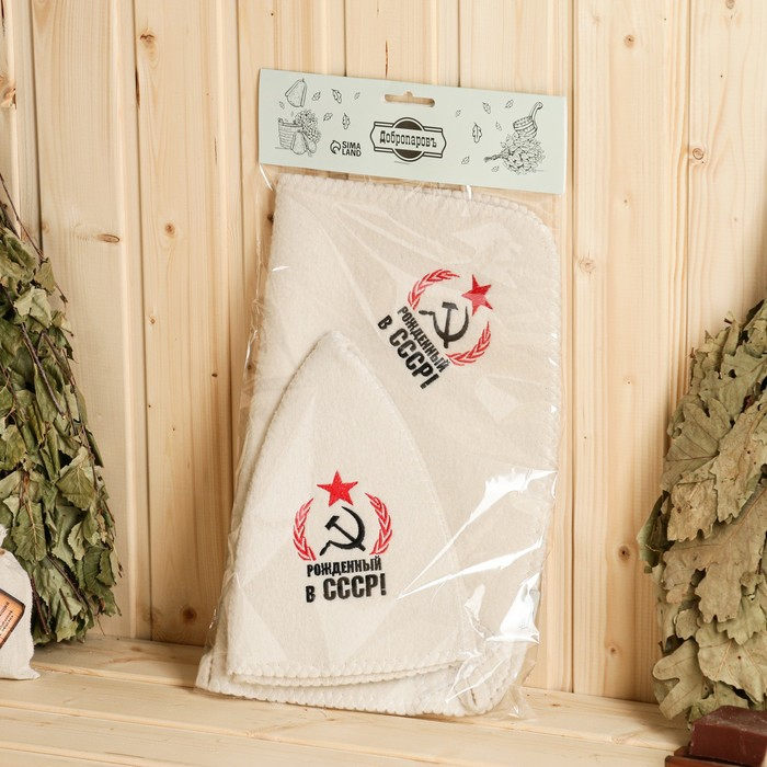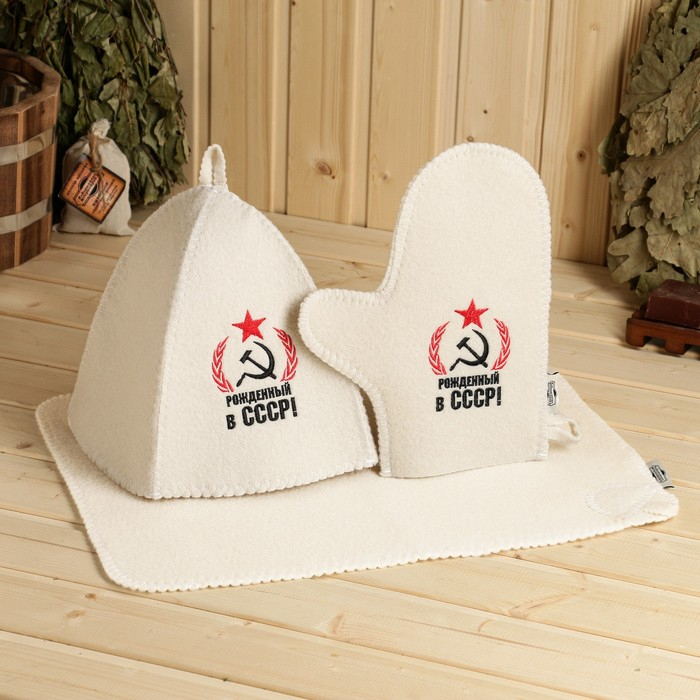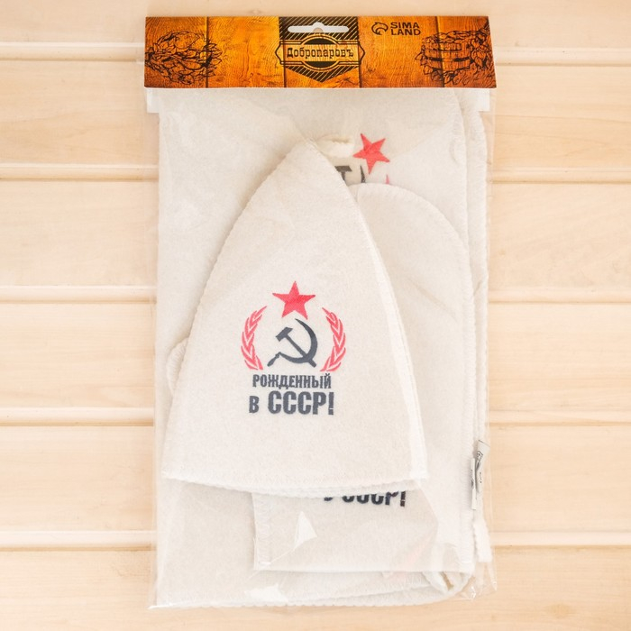 Набор банный 3 предмета "Рожденный в СССР, серп и молот", белый, в плёнке