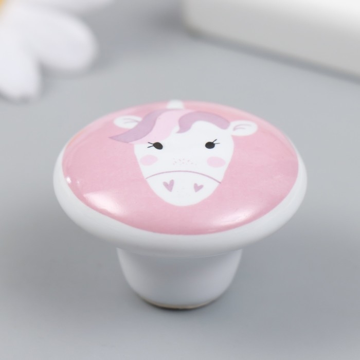 Ручка для шкатулки керамика, металл "Единорожка" 3,8х3,8х2,8 см