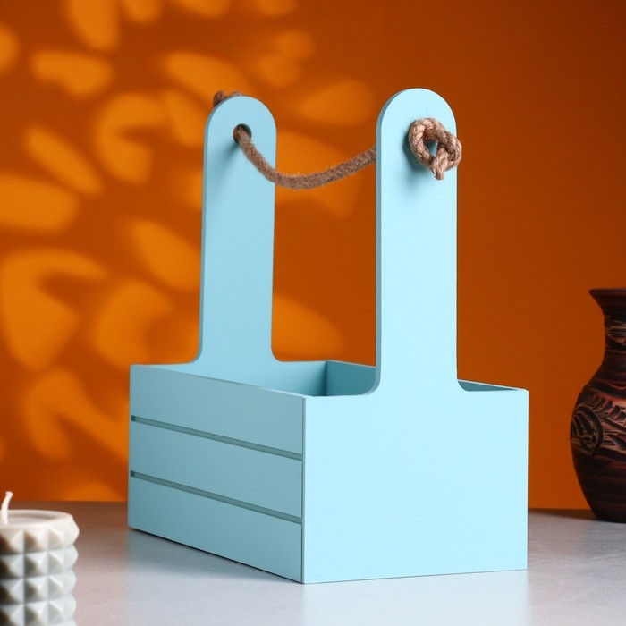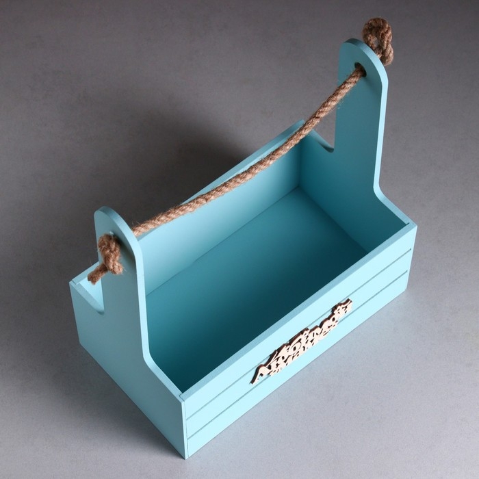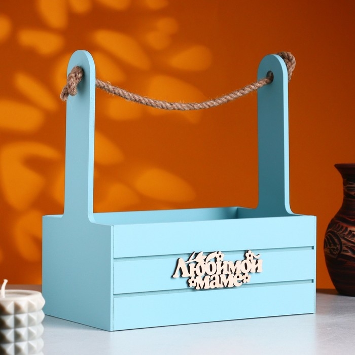 Ящик - кашпо деревянный 25х15х30 "Любимой Маме" Серо-голубой