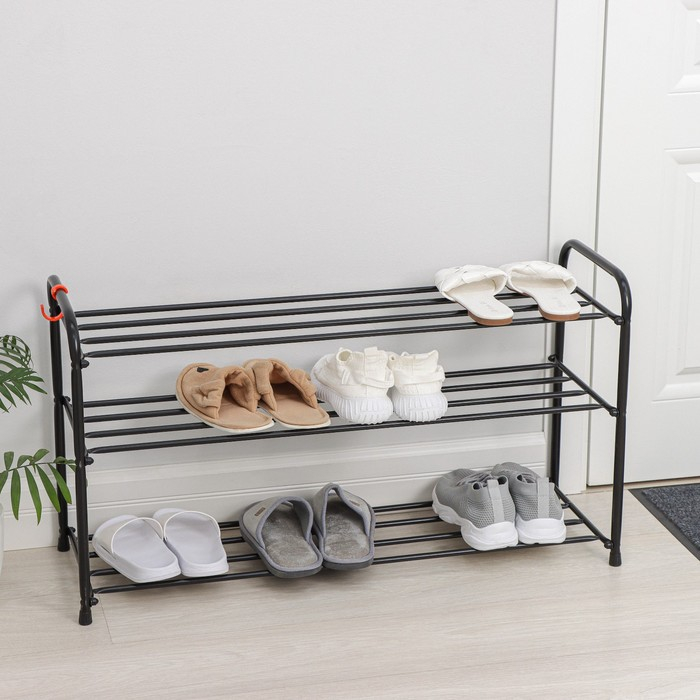 Подставка для обуви, 3 яруса, 87×30×48 см, цвет чёрный