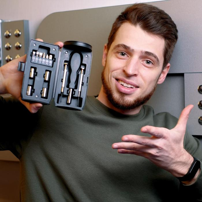 Подарочный набор в банке состоит из 13 предметов, каждый из которых будет полезен и надежен в тысячах жизненных ситуациях: при ремонте автомобиля или бытовой техники, при сантехнических работах в квартире или на даче и так далее. Для удобства работы данными приспособлениями предусмотрена удобная в обхвате рукоятка, повторяющая форму ладони.