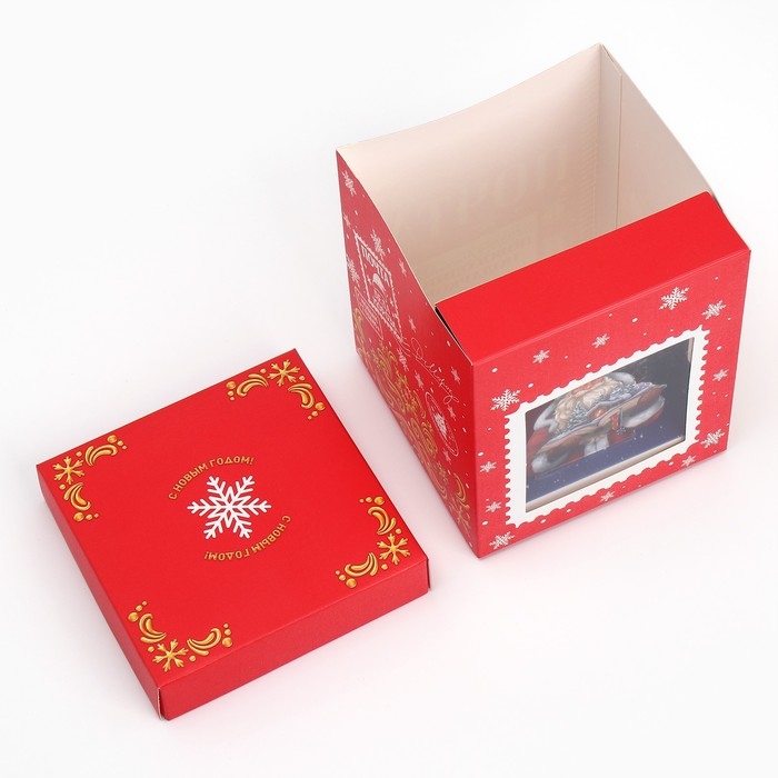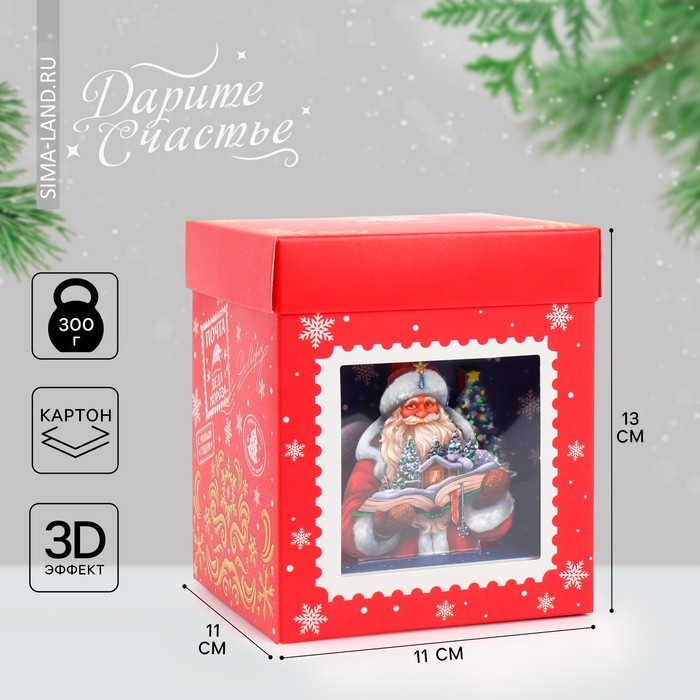 Коробка подарочная новогодняя складная с 3D эффектом «Почта», 11 х 11 х 13 см, Новый год
