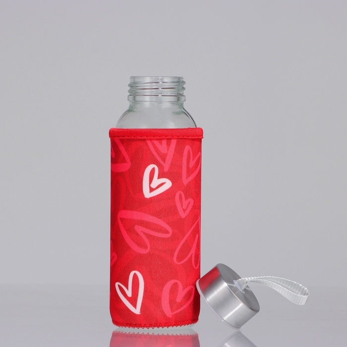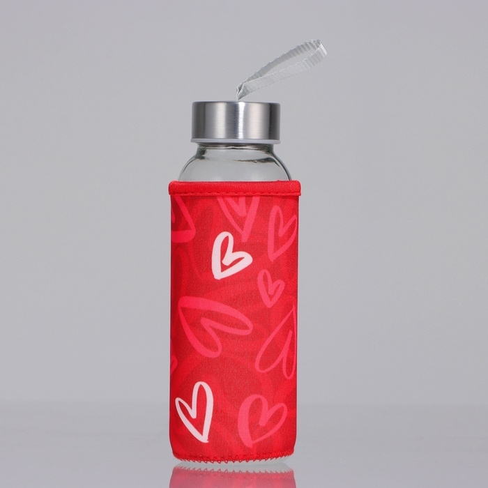 Бутылка стекло в чехле «Сердечки», 350 мл
