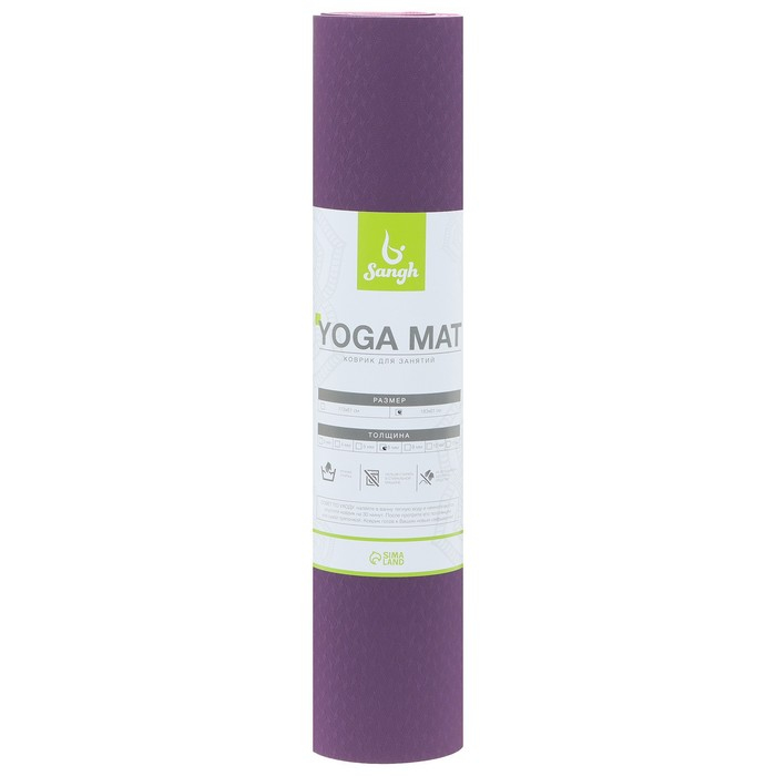 Коврик для йоги Sangh, 183×61×0,6 см, цвет фиолетовый