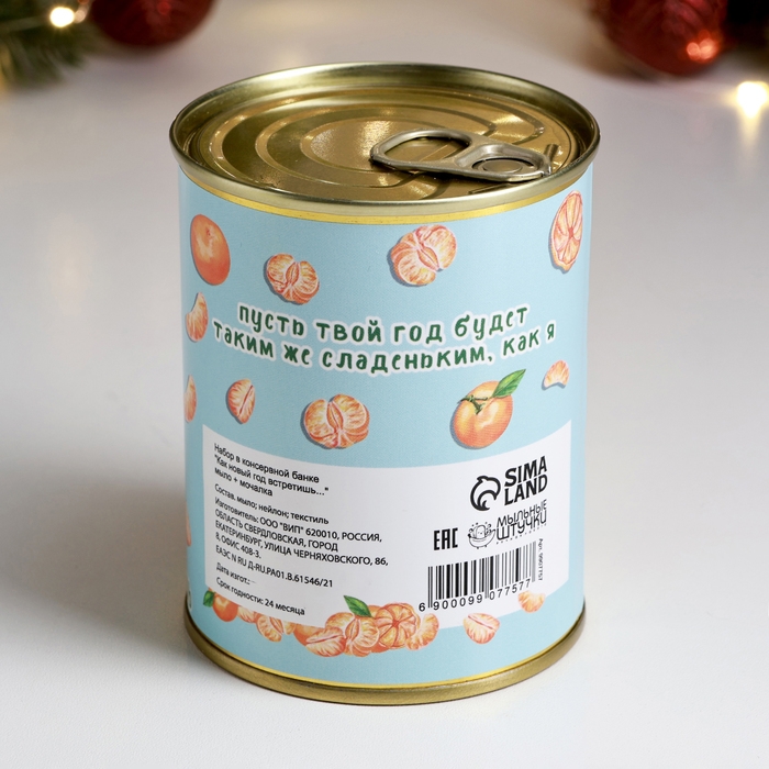 Набор в консервной банке "Как новый год встретишь..." мыло + мочалка