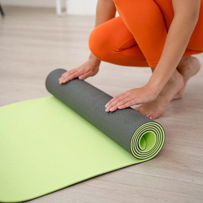 Коврик подходит для занятий йогой и фитнесом дома и в спортивных залах. Помогает в выполнении асан или других упражнений. Смягчает упор тела на твёрдую поверхность. Сохраняет форму после выполнения упражнений.