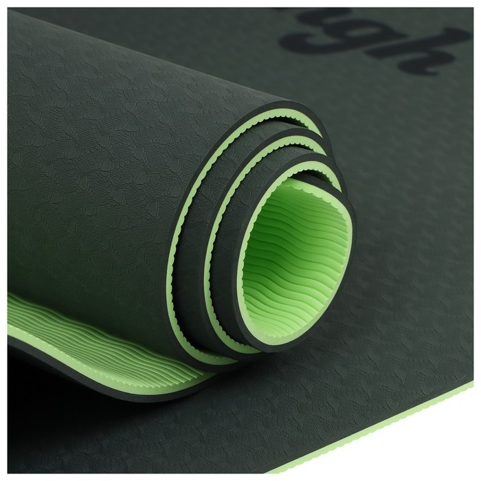 Коврик для фитнеса и йоги ONLYTOP, 183х61х0,6 см, цвет серый/чёрный
