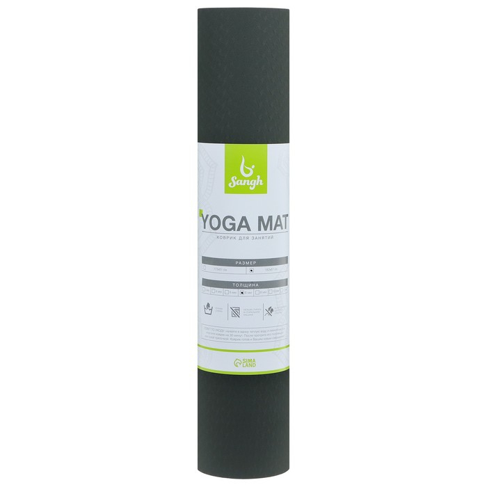 Коврик для йоги Sangh, 173х61х0,3 см, цвет чёрный