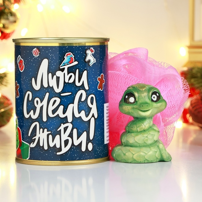 Набор в консервной банке "Люби, смейся, живи" мыло + мочалка