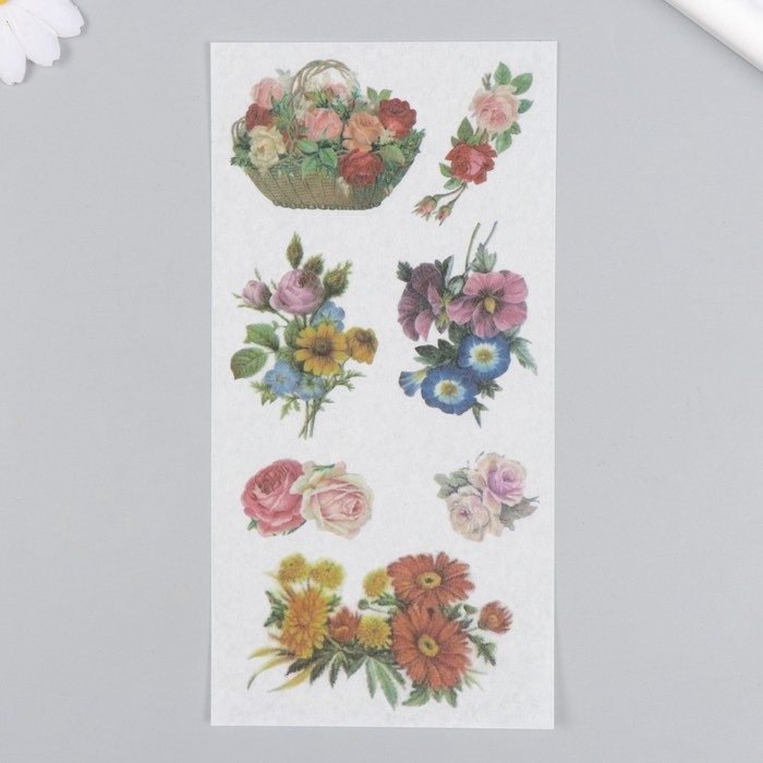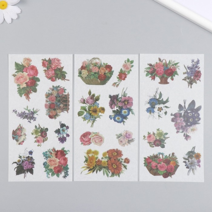 Наклейки для творчества бумага "Ретро букеты" набор 3 листа 10х20 см