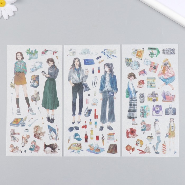 Наклейки для творчества бумага "Девушки и их увлечения" набор 3 листа 10х20 см