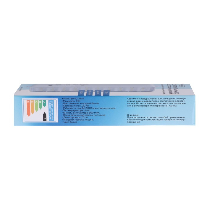 Светильник аварийный светодиодный, 30 LED, 3 Вт, AC/DC, 220 В, аккум. Lead Acid, белый