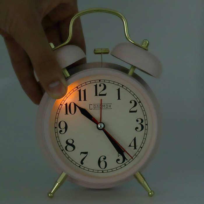 - Будильник оснащён кварцевым механизмом с дискретным ходом стрелок.