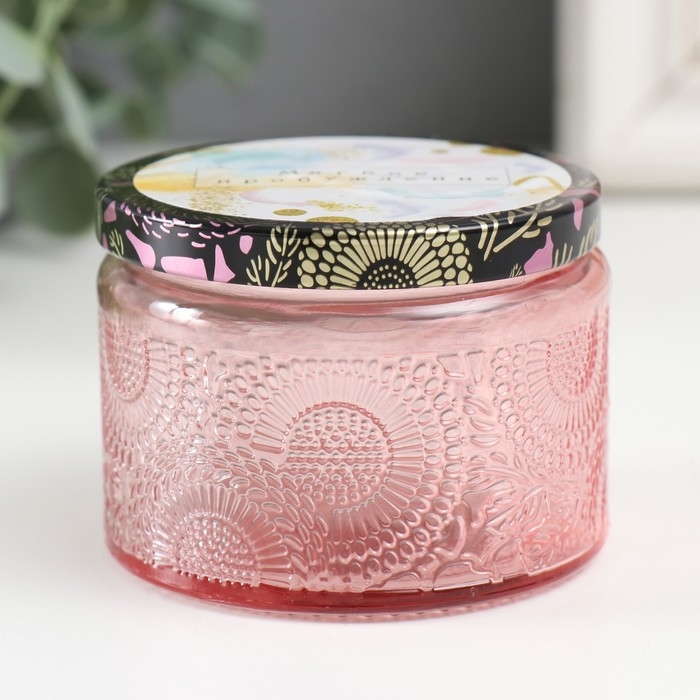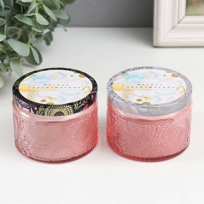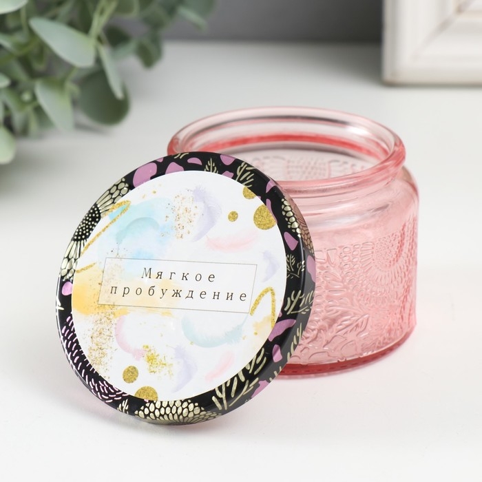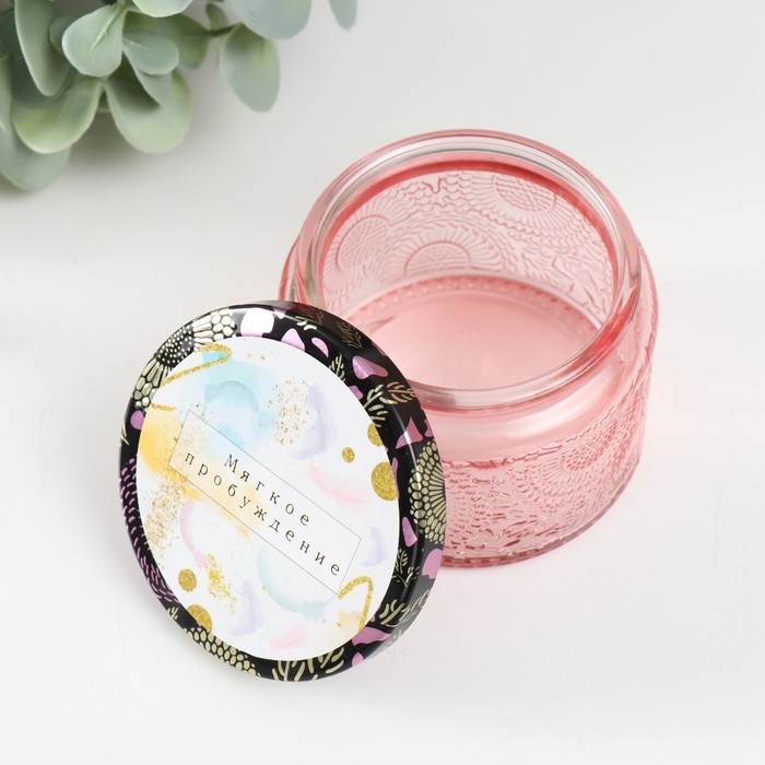 Банка для свечей стекло с крышкой "Мягкое пробуждение" 120 мл розовая, круглая 5х7х7 см