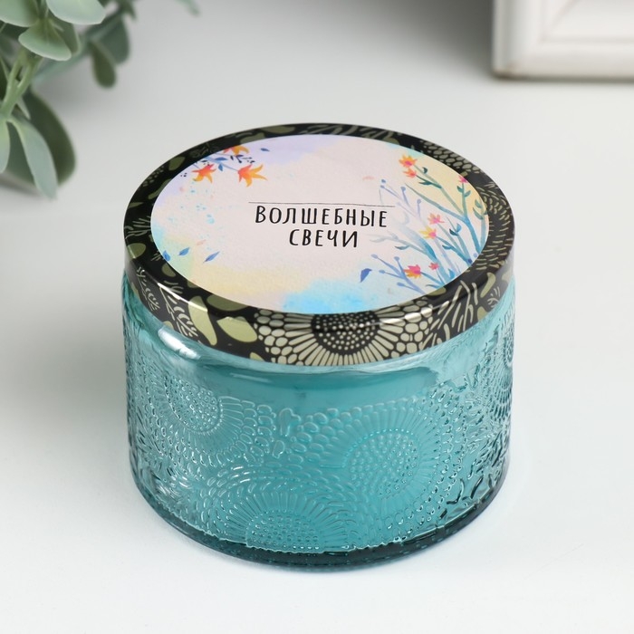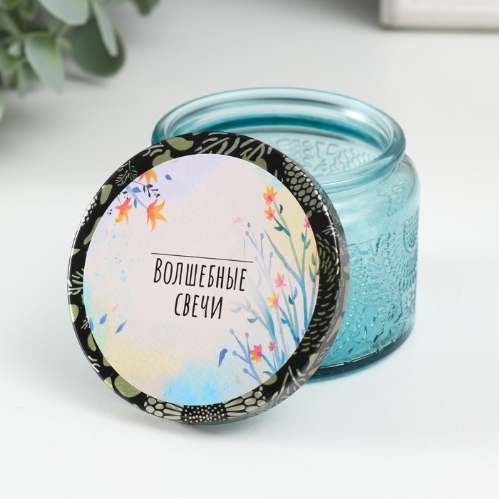 Банка для свечей стекло с крышкой "Волшебные свечи" 120 мл голубая, круглая 5х7х7 см