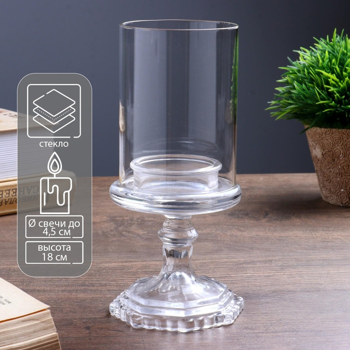 Подсвечник стекло на 1 свечу "Бокал на ножке" прозрачный 18х8,5х5 см