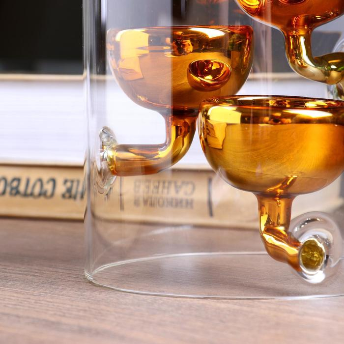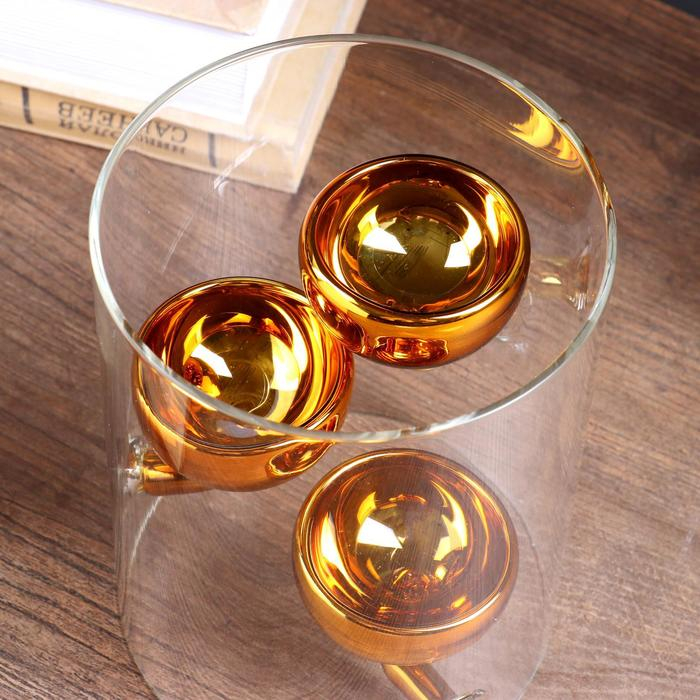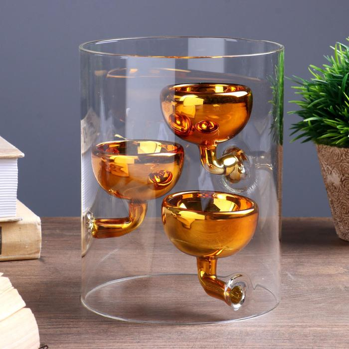 Подсвечник стекло на 3 свечи "Цилиндр с чашами" прозрачный с золотом 15х11,8х11,8 см