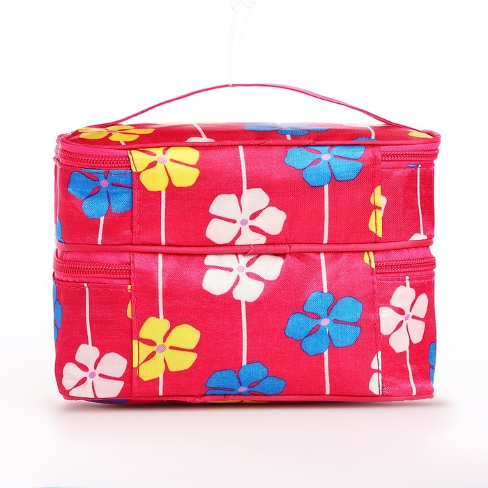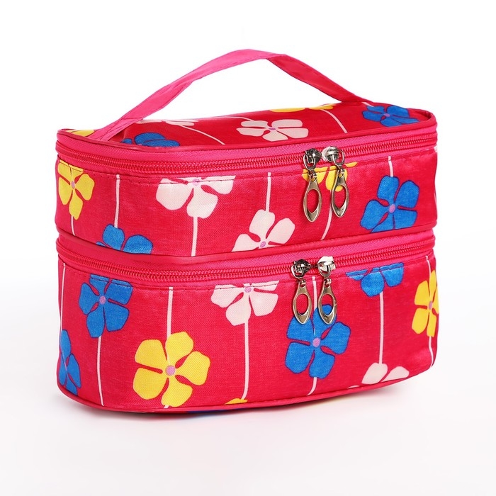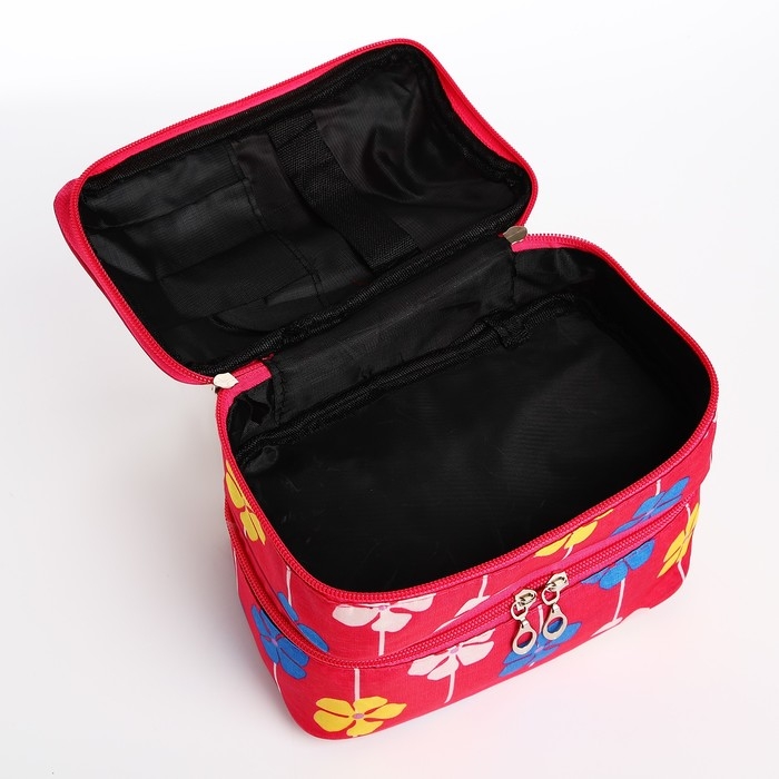Косметичка, 2 отдела на молниях, цвет малиновый