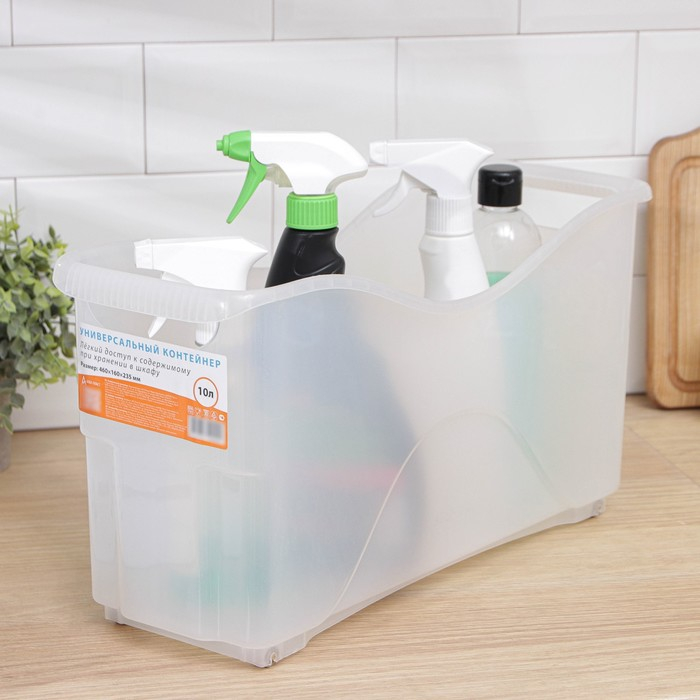Контейнер для хранения хозяйственный на колёсиках, 10 л, 46×16×23,5 см, прозрачный