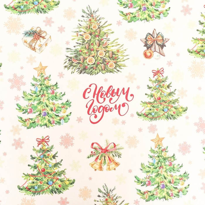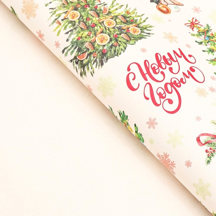 Новый год. Бумага упаковочная новогодняя крафт белый " Лес", 70 х 100 см.