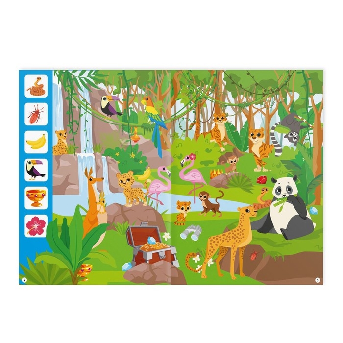 В этой книге вас ждёт множество заданий на поиск предметов, насекомых и зверей на картинках.