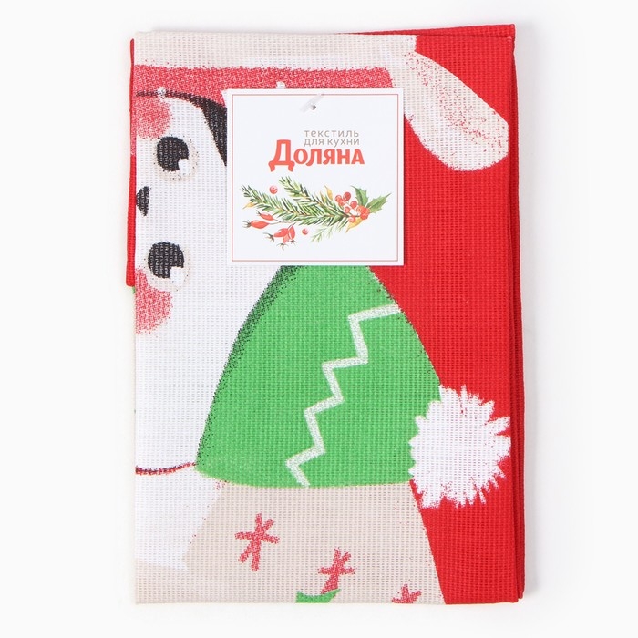Полотенце Доляна "Новогодний котик" 28х46 см, 100% хл, рогожка 164 г/м2