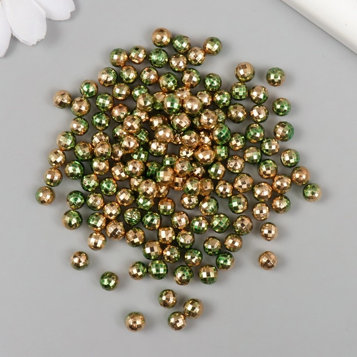 Декор для творчества пластик "Шарик с гранями. Золотисто-зелёный" набор 30 гр d=0,6 см