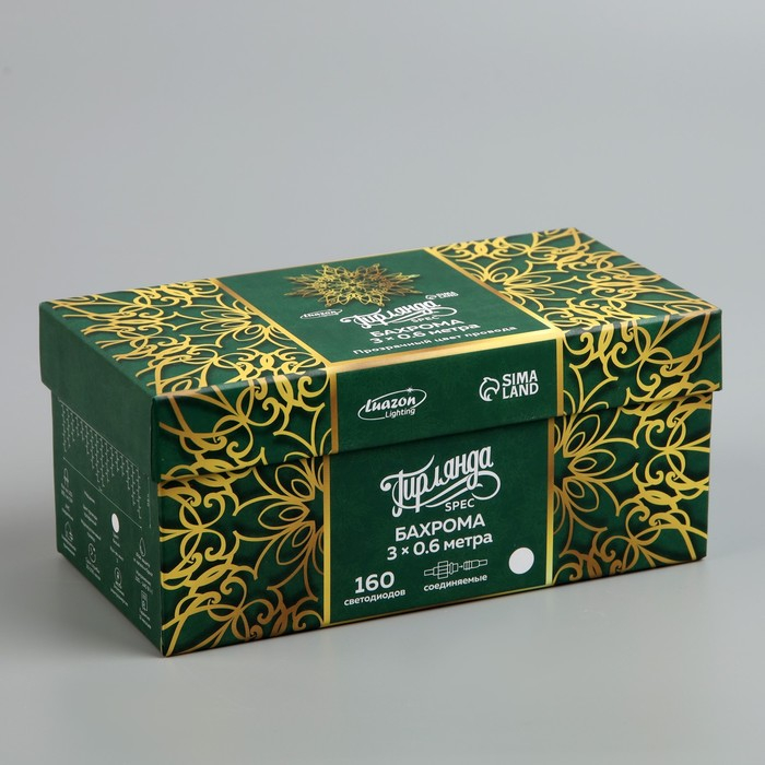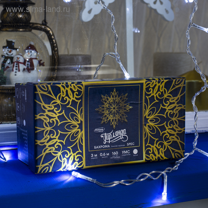 Гирлянда «Бахрома» 3 × 0.6 м, IP44, УМС, прозрачная нить, 160 LED, свечение белое, мерцание белым, 220 В