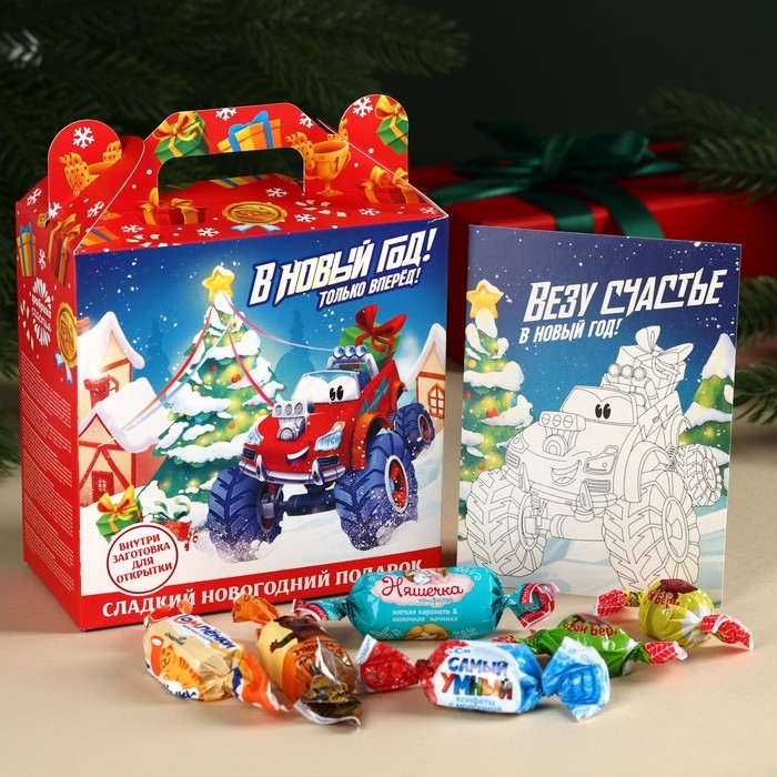 Сладкий подарок «Машинки», шоколадные конфеты и раскраска, 500 г.