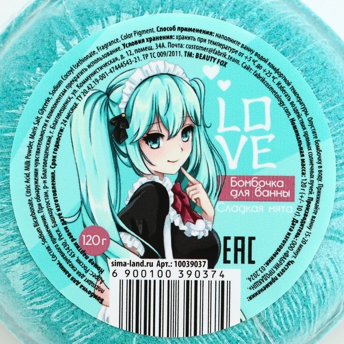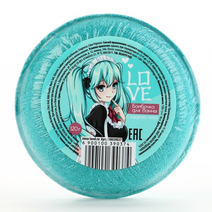 Бомбочка для ванны LOVE, 130 г, аромат мяты, BEAUTY FОХ