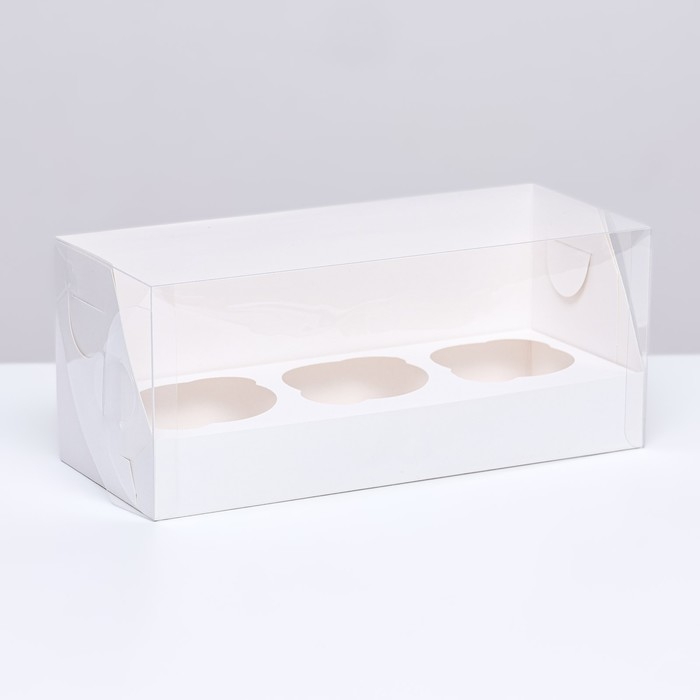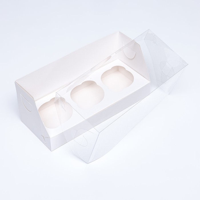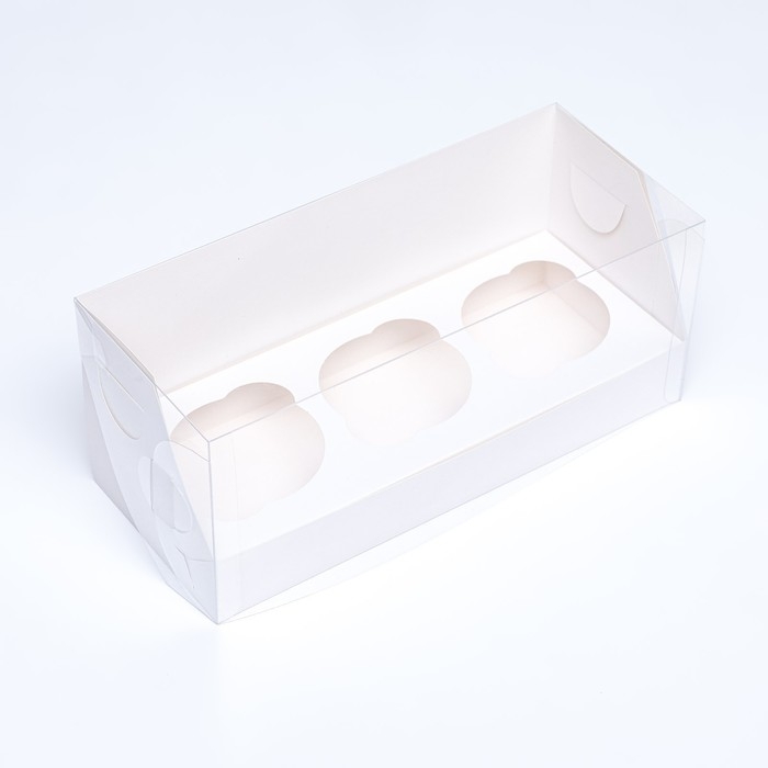 Кондитерская упаковка для 3 капкейков с прозрачной крышкой и удобными ручками - идеальное решение для упаковки и транспортировки свежих капкейков. Ее элегантный дизайн позволяет видеть внутренний содержимый, создавая аппетитный вид и придавая капкейкам особую презентацию. Прочные ручки облегчают переноску, что делает эту упаковку удобной и практичной для подарка и продажи домашних сладостей. Подарите свои вкусные капкейки в стильной и функциональной упаковке.