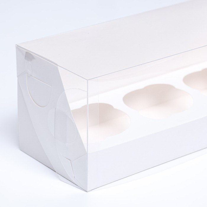 Коробка на 6 капкейков с окном, белая, 25 х 17 х 10 см