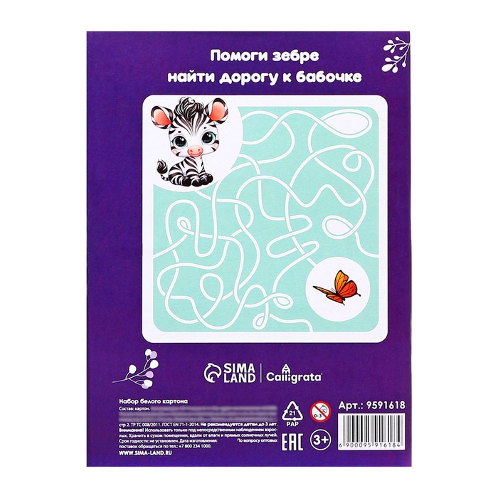 Картон белый А5, 24 листа, немелованный, плотность 200 г/м2, в папке