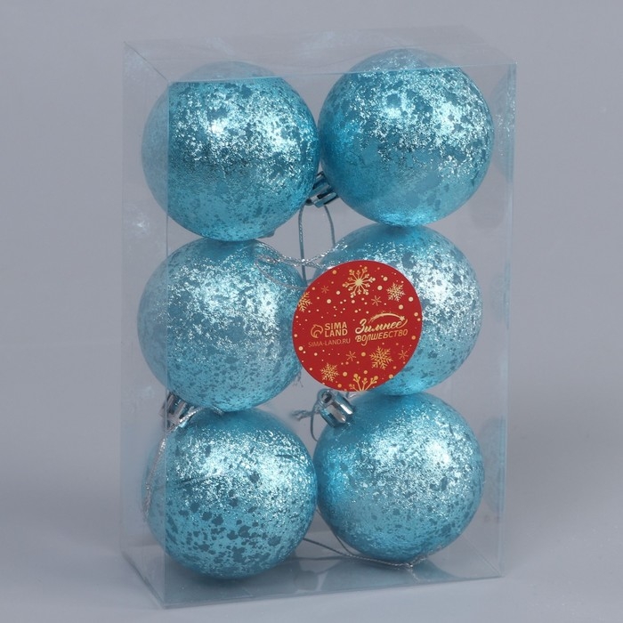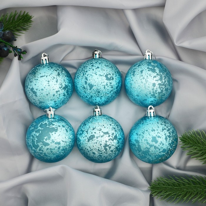Набор шаров пластик d-6 см, 6 шт «Ретро» голубой