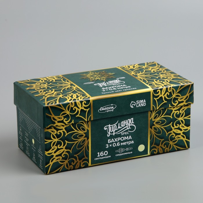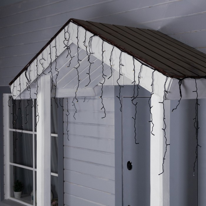 Гирлянда «Бахрома» 3 × 0.6 м, IP44, УМС, тёмная нить, 160 SMD-LED, свечение тёплое белое, 220 В