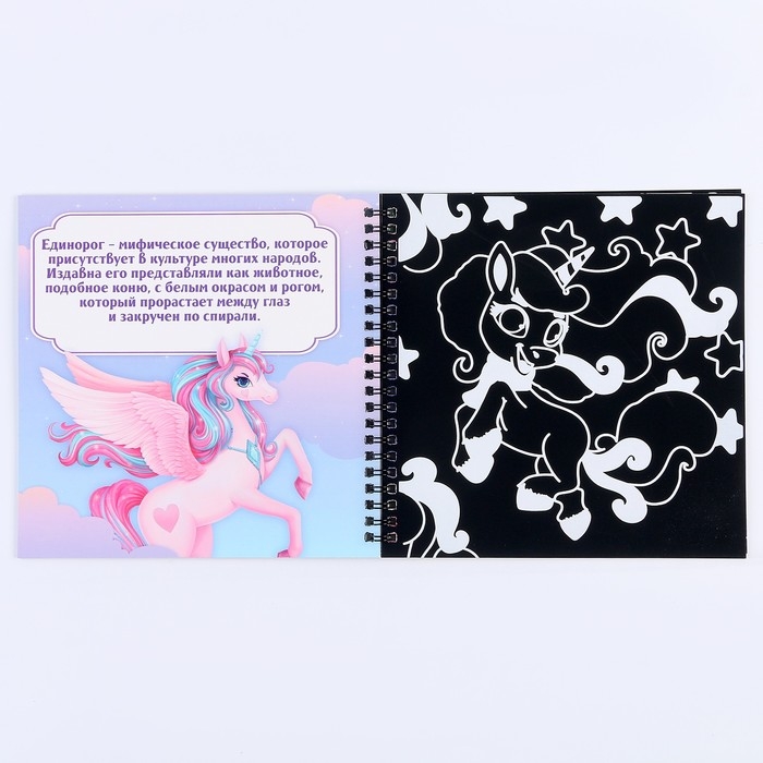 Гравюра блокнот детский «Принцесса и единорог», 10 листов, штихель, для девочки
