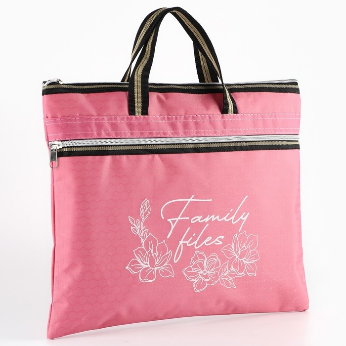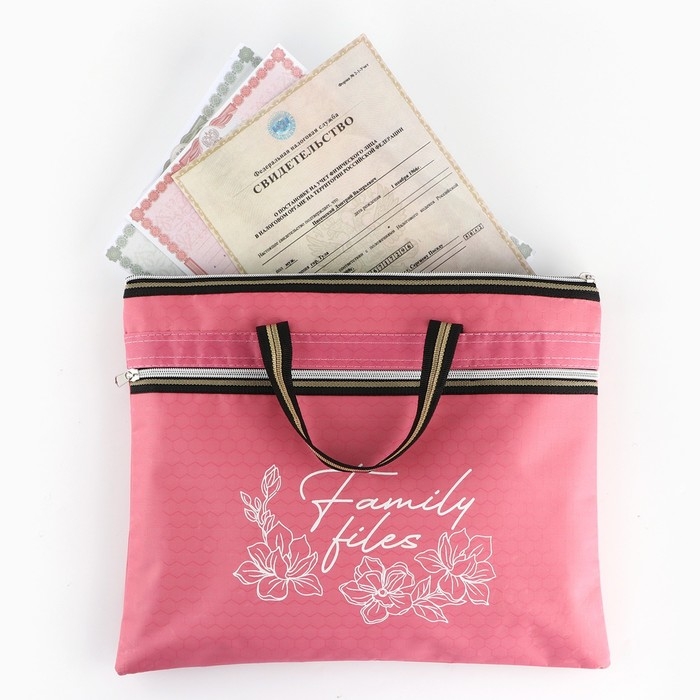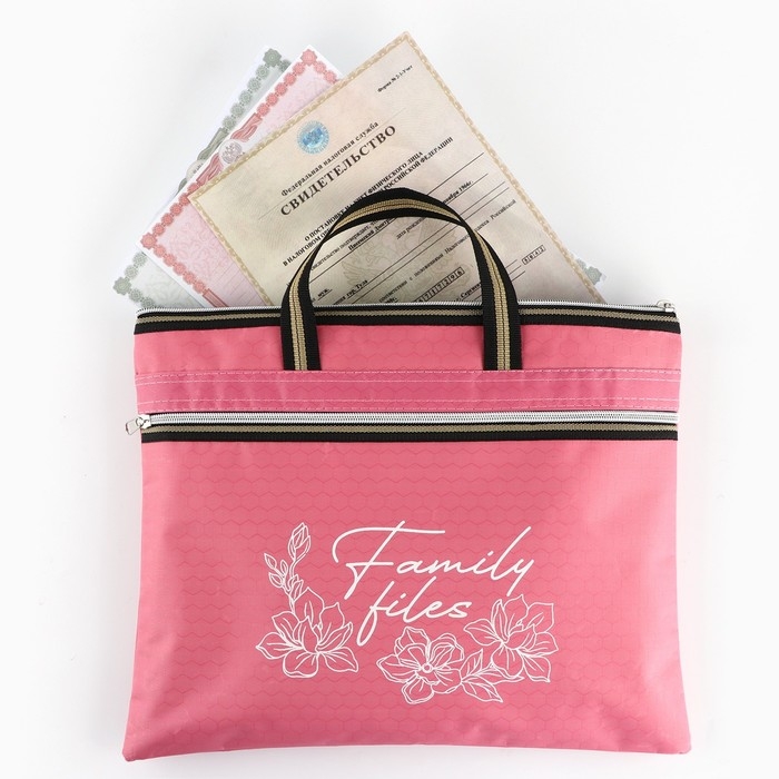 Папка для документов с ручками на молнии А4 Family documents, розовая, 36 х 29 см.